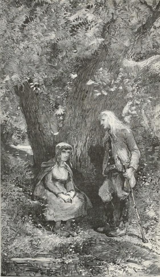 In the thickest part of the copse on the edge of one of those small circular clearings made in the woods by the charcoal-furnaces that are used to burn the roots of trees, in a sort of hole formed by the branches,—a bower of foliage, so to speak, half-open, like an alcove,—sat a woman on the moss, with a nursing child at her breast and the fair heads of two sleeping children resting against her knees.
