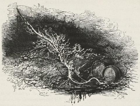 The soldiers forced cautiously. Everything was in full bloom; they were surrounded by a quivering wall of branches, whose leaves diffused a delicious freshness. Here and there sunbeams pierced, these green shades. At their feet the gladiolus, the German iris, the wild narcissus, the wood-daisy, that tiny flower, forerunner of the warm weather, the spring crocus,—all these embroidered and adorned a thick carpet of vegetation, abounding in every variety of moss, from the kind that looks like a caterpillar to that resembling a star.