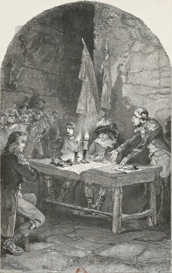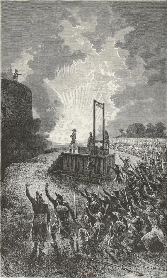 During the last days of May, 1793, one of the Parisian battalions introduced into Brittany by Santerre was reconnoitring the formidable La Saudraie Woods in Astillé. Decimated by this cruel war, the battalion was reduced to about three hundred men. This was at the time when, after Argonne, Jemmapes, and Valmy, of the first battalion of Paris, which had numbered six hundred volunteers, only twenty-seven men remained, thirty-three of the second, and fifty-seven of the third,—a time of epic combats. The battalion sent from Paris into La Vendée numbered nine hundred and twelve men. Each regiment had three pieces of cannon. They had been quickly mustered. On the 25th of April, Gohier being Minister of Justice, and Bouchotte Minister of War, the section of Bon Conseil had offered to send volunteer battalions into La Vendée; the report was made by Lubin, a member of the Commune. On the 1st of May, Santerre was ready to send off twelve thousand men, thirty field-pieces, and one battalion of gunners. These battalions, notwithstanding they were so quickly formed, serve as models even at the present day, and regiments of the line are formed on the same plan; they altered the former proportion between the number of soldiers and that of non-commissioned officers.