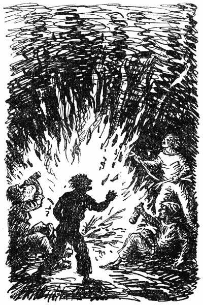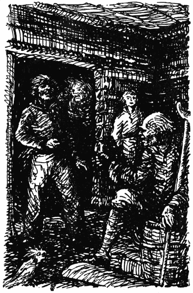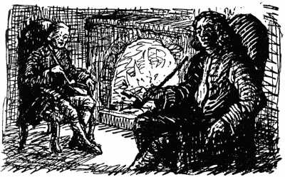 „Na, wer denn sonst?“ erwiderte der andere behaglich. „Natürlich, der schwarze Hund, wie er leibt und lebt, kommt seinen alten Schiffskameraden im ‚Admiral Benbow‘ besuchen. Ah, Bill, Bill, wir haben Zeiten erlebt, wir zwei, seit damals, als ich die[S. 22] zwei Klauen da verlor.“ Und dabei hielt er seine verstümmelte Hand in die Höhe.