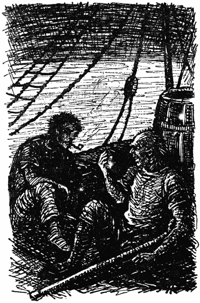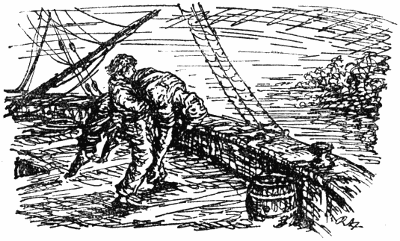 Nun, meine Mutter war oben beim Vater und ich deckte eben den Frühstückstisch für den Kapitän, als sich die Tür öffnete und ein Mann hereinkam, den ich nie zuvor gesehen hatte. Er war ein blasser, aufgeschwemmter Mensch, dem zwei Finger der linken Hand fehlten und der, trotzdem er einen Hirschfänger trug, nicht sehr kampftüchtig aussah. Ich hielt stets die Augen offen, um Seefahrer mit einem oder mit zwei Beinen nicht zu versäumen, aber dieser da verwirrte mich. Er war kein Seemann, und doch hatte er etwas Seemännisches in seinem ganzen Wesen.