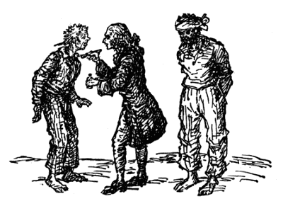 „Habt Ihr mit mir gesprochen, Herr?“ sagte der Doktor. Und als der brutale Kerl das mit einem neuerlichen Fluch bejahte, antwortete er: „Ich habe Euch nur eines zu sagen, Herr! Wenn Ihr so weiter Rum sauft, wird die Welt bald einen sehr dreckigen Lumpen los sein!“