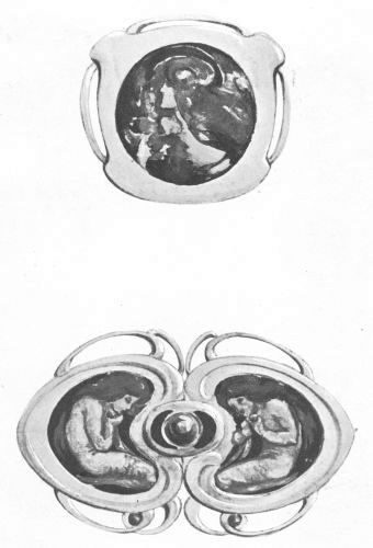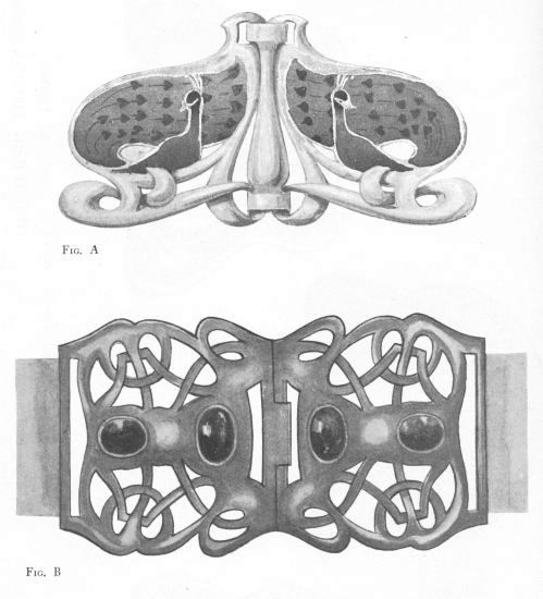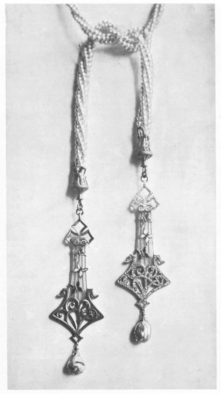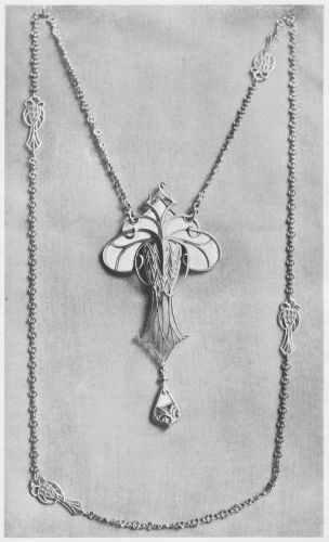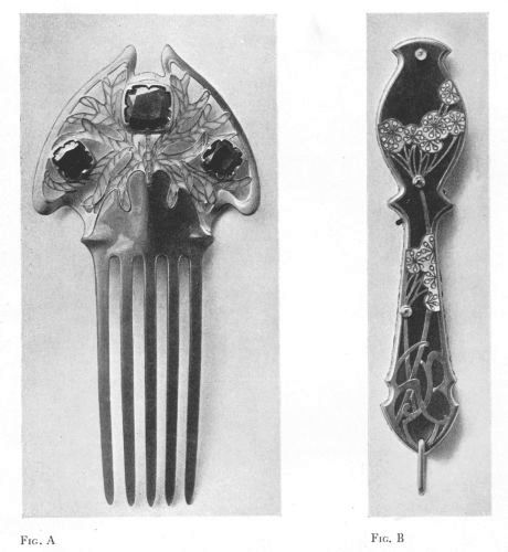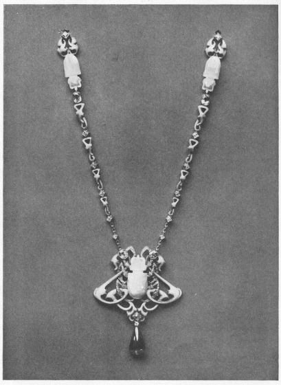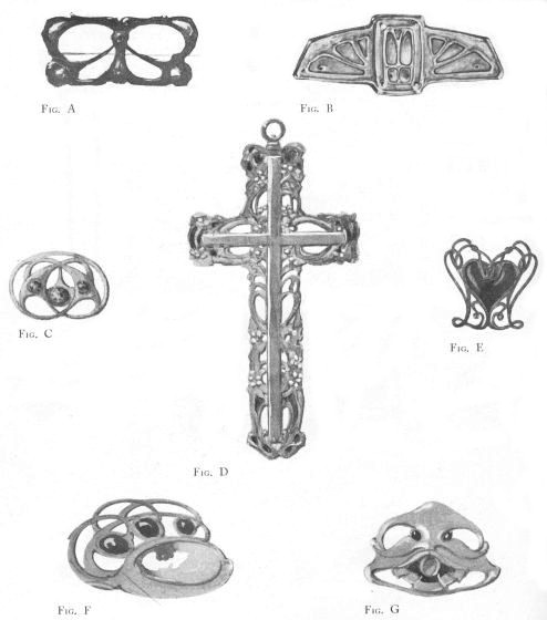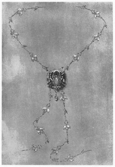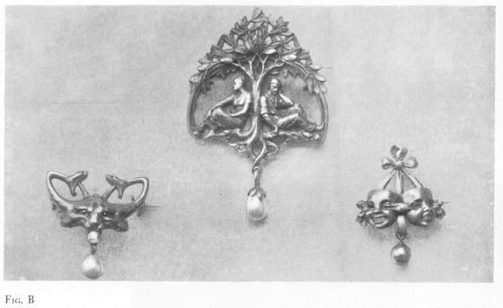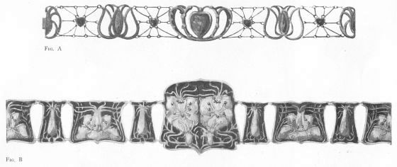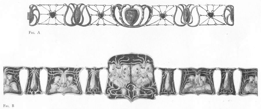 It is in the thorough belief of the soundness or these principles that the Editor has selected a number of representative modern examples of design by British and Continental workers, which, from their beauty and freshness of treatment, bear testimony to the great advance that has recently been made in the right understanding and rendering of the jeweller's and fan-maker's arts. If articles of good taste are to be produced, there must be a demand for them. So long as a public is to be found that will purchase trinketry in imitation of wheel-barrows, cocks and hens, flower-pots, and moons and stars, so long will the advance in art be retarded.