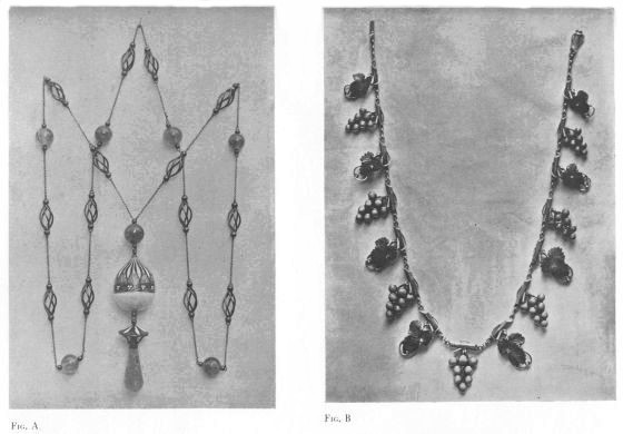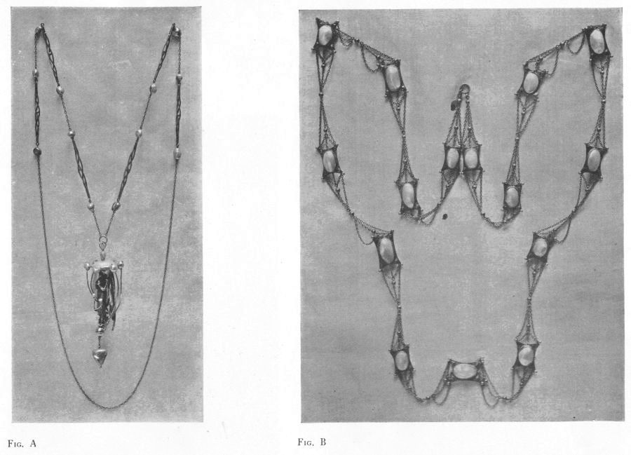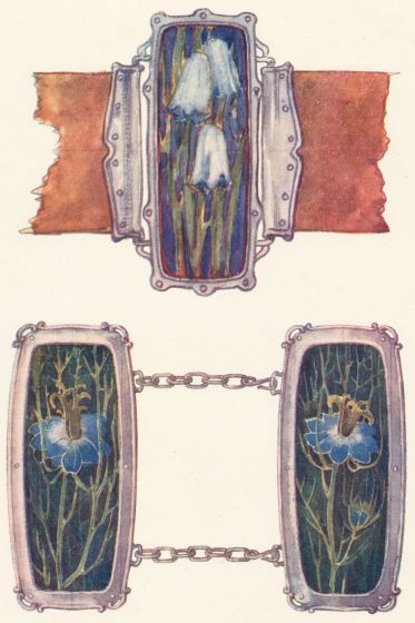 Project Gutenberg's Modern Design in Jewellery and Fans, by Various This eBook is for the use of anyone anywhere in the United States and most other parts of the world at no cost and with almost no restrictions whatsoever. You may copy it, give it away or re-use it under the terms of the Project Gutenberg License included with this eBook or online at www.gutenberg.org. If you are not located in the United States, you'll have to check the laws of the country where you are located before using this ebook. Title: Modern Design in Jewellery and Fans Author: Various Editor: Charles Holme Release Date: July 31, 2015 [EBook #49559] Language: English Character set encoding: ISO-8859-1 *** START OF THIS PROJECT GUTENBERG EBOOK MODERN DESIGN IN JEWELLERY *** Produced by Siobhan Hillman, Jane Robins and the Online Distributed Proofreading Team at http://www.pgdp.net (This file was produced from images generously made available by The Internet Archive/Canadian Libraries)