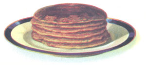 Sift dry ingredients together; add beaten eggs, milk and melted shortening; mix well. Bake on hot, slightly greased griddle until bubbles appear; turn over quickly and brown other side. Serve immediately on hot plate with plenty of butter and syrup or butter and cinnamon mixed with sugar.