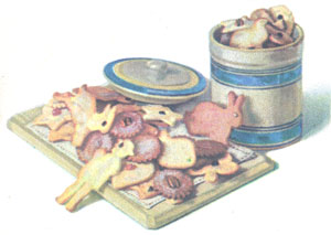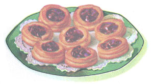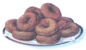 These doughnuts are very wholesome and excellent for children. They do not contain any shortening and should be fried very carefully in fat at just the right temperature so that no grease will be absorbed. They can be served plain or sprinkled with powdered sugar after they have thoroughly drained and cooled.