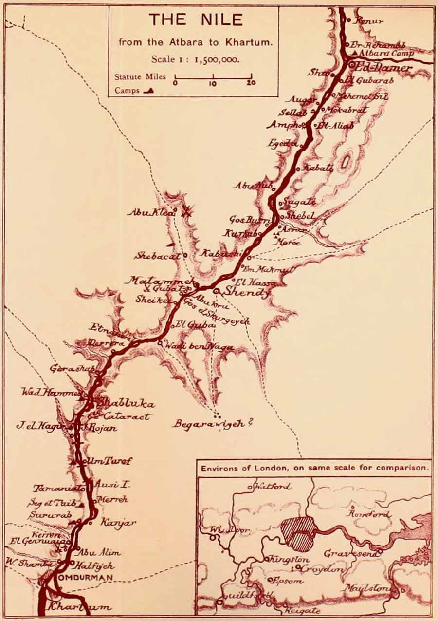 We rapidly left Cairo behind us, and with it the joys and comforts of civilisation. It was a positive relief to feel that we had now commenced in real earnest to travel the twelve hundred miles which separated us from our final goal far away in the Sudan. Still, at the time of our departure from Cairo, no certainty was felt that there would be any fighting at all. Rumours were persistently current that the Khalifa and his forces had retreated from Omdurman. It would, as somebody said, be simply a case of cherchez la femme. If the women and children became panic-stricken and retired, it was certain that the Dervishes would lose heart and make a poor show of resistance. Take, for instance, the case of Berber. Here a[23] vigorous defence might reasonably have been expected, but it was afterwards found that an exodus of the women brought about the total evacuation of the town, which our advancing forces thus occupied without any fighting whatever. Still it was too early to speculate on the amount of opposition our troops were likely to encounter. Whether there would be one or more sharp struggles before we found ourselves face to face with the ramparts of Omdurman; whether even then those ramparts would be held by Dervishes driven to bay and fighting with their old desperate courage, or we should bivouac in a deserted city—all these things, we felt, lay verily on the knees of the gods!
