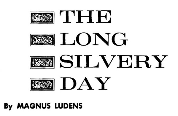 The Project Gutenberg EBook of The Long, Silvery Day, by Magnus Ludens This eBook is for the use of anyone anywhere in the United States and most other parts of the world at no cost and with almost no restrictions whatsoever. You may copy it, give it away or re-use it under the terms of the Project Gutenberg License included with this eBook or online at www.gutenberg.org. If you are not located in the United States, you'll have to check the laws of the country where you are located before using this ebook. Title: The Long, Silvery Day Author: Magnus Ludens Release Date: March 25, 2016 [EBook #51550] Language: English Character set encoding: ASCII *** START OF THIS PROJECT GUTENBERG EBOOK THE LONG, SILVERY DAY *** Produced by Greg Weeks, Mary Meehan and the Online Distributed Proofreading Team at http://www.pgdp.net