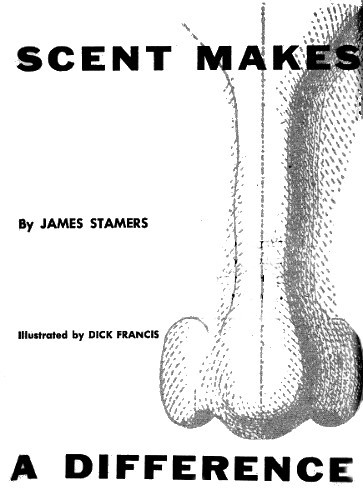 The Project Gutenberg EBook of Scent Makes a Difference, by James Stamers This eBook is for the use of anyone anywhere in the United States and most other parts of the world at no cost and with almost no restrictions whatsoever. You may copy it, give it away or re-use it under the terms of the Project Gutenberg License included with this eBook or online at www.gutenberg.org. If you are not located in the United States, you'll have to check the laws of the country where you are located before using this ebook. Title: Scent Makes a Difference Author: James Stamers Release Date: April 17, 2016 [EBook #51773] Language: English Character set encoding: ASCII *** START OF THIS PROJECT GUTENBERG EBOOK SCENT MAKES A DIFFERENCE *** Produced by Greg Weeks, Mary Meehan and the Online Distributed Proofreading Team at http://www.pgdp.net