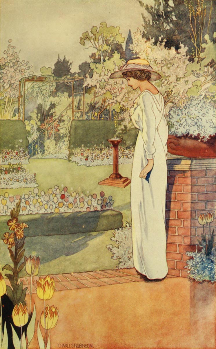 When we first began to own a garden we could not bring ourselves to wait in patience for developments. We expected our beds to bloom as by magic. We vehemently ordered pot-plants because no seedlings could be expected to “do anything” in June; and the disproportion between our bills and the result filled us with dismay. But a garden is at once the most delightful and cunning of teachers. How kindly are the virtues it inculcates!—Patience, faith, hope, tenderness, gratitude, resignation, things in themselves as fragrant and beautiful as 30the flowers, or like the herbs, a little repellent of aspect, but sweet in their bruised savour.