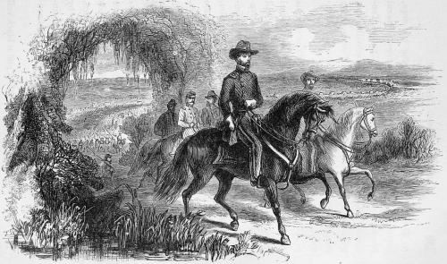 With a highly nervous temperament and manner, he is always calm and self-possessed in action. Genial and sincere his troops admire and love him, and are ready to follow him to the bosom of a boundless wilderness thronged with foes, or into the swamps waist deep to storm a fortress beyond.
