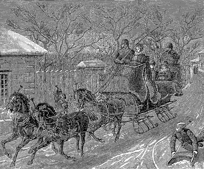It was at this moment that an unusually loud jingle of bells was heard behind them, and as the lads swerved to one side a large handsome sleigh, drawn by four coal-black horses, passed them like a flash.