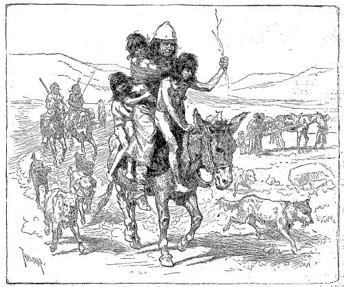 The terrified driver leaped to his feet in an instant, but how could he hope to stop the team? His shouts and the wild clangor of the bells speedily brought the whole party out of the house, but they, too, were powerless.