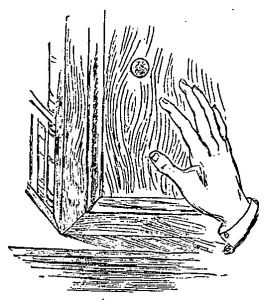 The first illustrates the pressure of the atmosphere. Take a coin and rub it against some oaken book-case or very smooth wooden surface, as shown in Fig. 1. Press it hard for a moment, and then withdraw the fingers. The coin will continue to stick to the wood.