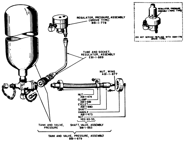 n. (Added). Pressure regulator may be shipped at zero adjustment to prevent possibility of strain on diaphragm during shipment and storage. A regulator shipped in this condition has a tag (tied to the[2] tank coupling) stating that the regulator is not set. When weapon is received in this condition, it must be adjusted as described in paragraph 67 before it can be operated.