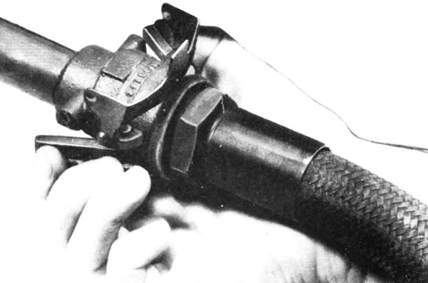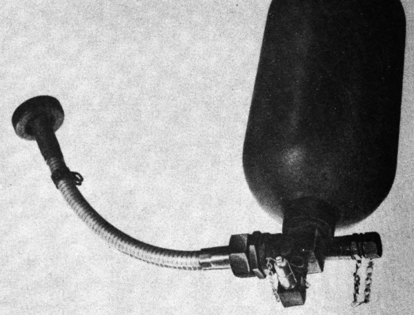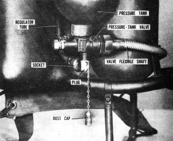 b. Close the pressure-tank valve by turning valve handle clockwise (to conserve remaining pressure in pressure tank) only if additional shots are to be fired before refilling and recharging.