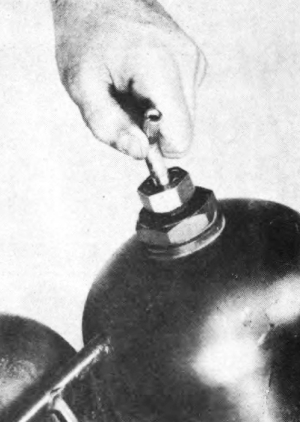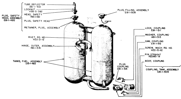 a. Place the new * * * to 2 minutes. Slight pressure sometimes builds up in the fuel tanks, even though the pressure-tank valve has not been opened, and causes some overflow of fuel when the coupling plug is removed. This pressure may be relieved by—