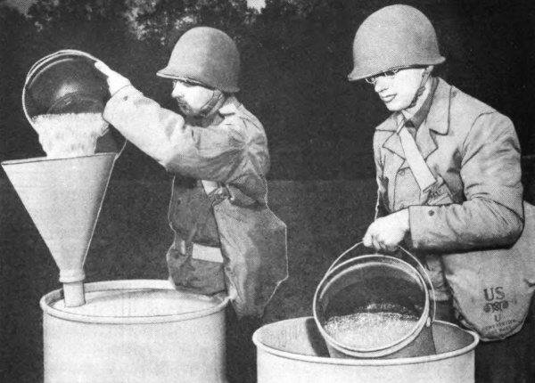 b. Use of water in training. Water may be used (instead of fuel) for elementary practice firing. Ignition cylinders are * * * piece, and lubricated (Par. 49). Use of water, however, should always be supplemented by firing ignited fuel because water does not give a correct impression of stream and flame characteristics.