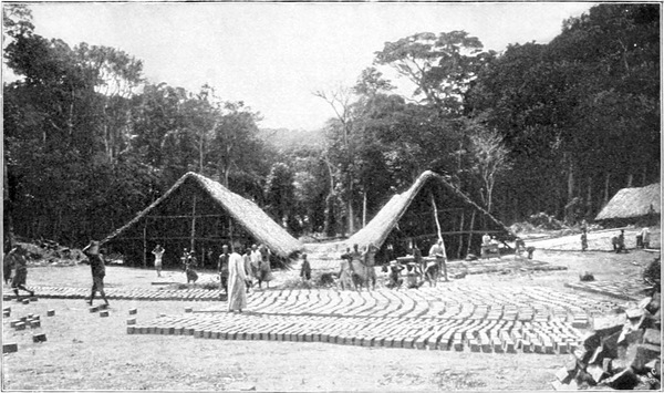 Das deutsche Kommando klingt in dieser Umgebung komisch, und zwar nicht nur aus dem Papageienschnabel; noch drolliger wirkt es aus dem Munde der schwarzen Soldaten. Die Kerls[S. 10] sind ganz famos einexerziert, sie marschieren mit einer Strammheit, wie unsere Soldaten zu Haus, machen „Kehrt“ und Schwenken usw., wie man es sich exakter kaum denken kann — und wie sie sich schlagen, haben sie auch schon zur Genüge bewiesen!