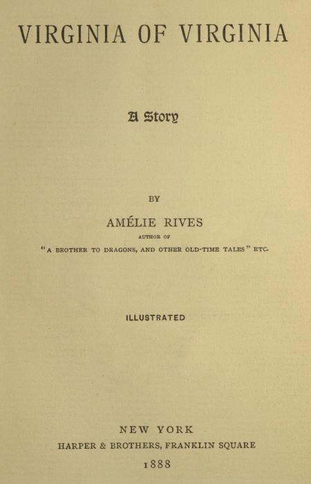 The Project Gutenberg EBook of Virginia of Virginia, by Amélie Rives