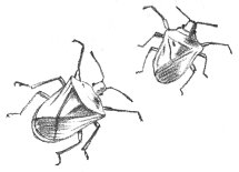 The sand offers few places of retreat and few for hiding. It is not surprising, then, that many of the living things here have a sand-colored protective coloration. There is a large Grasshopper, or Locust, commonly found on the Beach. Its dull, gray, speckled wing-covers make it practically invisible when at rest. But the underwings, used for flight, are a striking orange with black bands. When discovered, the Locust flies up, confusing its attacker with this bright flash of color and a loud whirring noise. Unlike most insects, this Locust eats the thick-skinned, dry Beach Grass.