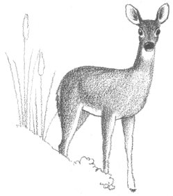 When parts of Castle Neck were rich farmland, specialized forms of life which thrive in that type of environment were abundant there. We have only to look at Castle Hill, just a few hundred yards from the dunes, or at some of the swamps that dot the Neck to see how different are the inhabitants from those of the dunes. On the Hill live the Oaks, Maples, Jumping Mice, Raccoons, and Toads, plants and animals that would be misfits indeed—if they could live at all—in the world of moving sand. Maples and Oaks, relics of the time when the dune area was fertile, may still be found dying and being buried over by drifting sand. Now it is a different community of plants and animals living here. The continually shifting sand and the scarcity of water limit the variety of life found, but each dune dweller is specially adapted to this homesite, and no matter how lush, green, and more attractive a neighboring meadow may look to us, many of these specialized organisms could not survive there at all.