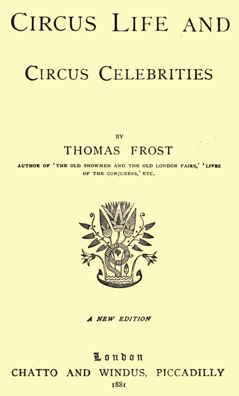 Project Gutenberg's Circus Life and Circus Celebrities, by Thomas Frost This eBook is for the use of anyone anywhere in the United States and most other parts of the world at no cost and with almost no restrictions whatsoever. You may copy it, give it away or re-use it under the terms of the Project Gutenberg License included with this eBook or online at www.gutenberg.org. If you are not located in the United States, you'll have to check the laws of the country where you are located before using this ebook. Title: Circus Life and Circus Celebrities Author: Thomas Frost Release Date: May 24, 2017 [EBook #54775] Language: English Character set encoding: UTF-8 *** START OF THIS PROJECT GUTENBERG EBOOK CIRCUS LIFE AND CIRCUS CELEBRITIES *** Produced by KD Weeks, deaurider and the Online Distributed Proofreading Team at http://www.pgdp.net (This file was produced from images generously made available by The Internet Archive)