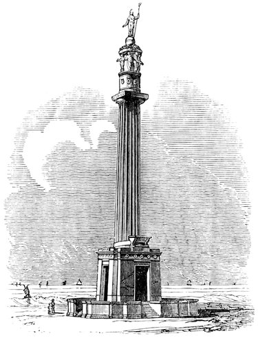 To prepare a fit base for the reception of the column, the shelving rock was cut into six steps, which were filled up with masonry, firmly dovetailed, and pinned with oaken trenails to the living stone, so that the upper course presented a level circular surface. This part of the work was attended with the greatest difficulty; the rock being accessible only at low water, and in calm weather. The building is faced with the Cornish granite, called in the country, moorstone; a material selected on account of its durability and hardness, which bids defiance to the depredations of marine animals, which have been known to do serious injury by perforating Portland stone when placed under water. The interior is built of Portland stone, which is more easily obtained in large blocks, and is less expensive in the working. It is an instructive lesson, not only to the young engineer, but to all persons, to see the diligence which Smeaton used to ascertain what kind of stone was best fitted for his purposes, and from what materials the firmest and most lasting cement could be obtained. He well knew that in novel and great undertakings no precaution can be deemed superfluous which may contribute to success; and that it is wrong to trust implicitly to common methods, even where experience has shown them to be sufficient in common cases. For the height of twelve feet from the rock the building is solid. Every course of masonry is composed of stones firmly jointed and dovetailed into each other, and secured to the course below by joggles, or solid plugs of stone, which being let into both, effectually resist the lateral pressure 18of the waves, which tends to push off the upper from the under course. The interior, which is accessible by a moveable ladder, consists of four rooms, one over the other, surmounted by a glass lantern, in which the lights are placed. The height from the lowest point of the foundation to the floor of the lantern is seventy feet; the height of the lantern is twenty-one feet more. The building was commenced August 3, 1756, and finished October 8, 1759; and having braved uninjured the storms of seventy-three winters, is likely long to remain a monument almost as elegant, and far more useful, than the most splendid column ever raised to commemorate imperial victories. Its erection forms an era in the history of light-houses, a subject of great importance to a maritime nation. It came perfect from the mind of the artist; and has left nothing to be added or improved. After such an example no accessible rock can be considered impracticable: and in the more recent erection of a light-house on the dangerous Bell-rock, lying off the coast of Forfarshire, between the Frith of Tay and the Frith of Forth, which is built exactly in the same manner, and almost on the same model, we see the best proof of the value of an impulse, such as was given to this subject by Smeaton.