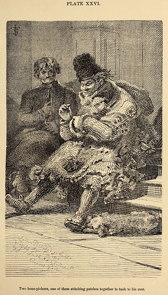 As every trade or profession had its patron saint, so the beggars made choice of St Martin, who appears to have had a great regard for them. This person was originally a soldier of rank in the armies of the Emperors Constantius and Julian, but preferring a religious life, he applied to Saint Hilary, of Poitou, who appointed him his sub-deacon; and soon afterwards becoming a saint himself, he of course acquired the power of working miracles, many of which, with much other legendary matter, have been related by his credulous but elegant historian, Sulpitius Severus, and transferred, with due additions and improvements, into that grand repertory of pious frauds, the Golden Legend, and some other works of similar authority. It is related of him, that when a soldier, as he passed by one of the gates of Amiens in winter time, he met a poor naked man, on whom none would bestow alms. Martin drew out his sword, and cutting his mantle asunder in the middle, gave one half to the poor man, having nothing else to bestow on him, contenting himself with the remainder to keep him from the cold. On the ensuing night he saw the Saviour of the world in heaven, clothed with that part which he had given to the poor man, and exclaiming to the angels that surrounded him, "Martin, yet new in the faith, hath covered me with this vesture." Ever afterwards he became particularly attached to beggars and poor people. The cripples and lepers seem, however, to have made exclusive choice of St Giles for their patron, to whom the hospitals and other places for their relief were usually dedicated. So the parish church of Cripplegate was dedicated to him; and the ward itself, named after a very ancient gate to which the crippled beggars particularly resorted. There would be some difficulty to account for their preference of this Saint, as he does not appear to have been either lame or leprous. He was a noble Christian, born at Athens, a man of singular charity, giving largely to the poor, and on one occasion doing more than St Martin, by giving the whole of his coat to a diseased and naked beggar, who is said to have been immediately healed on putting it on.