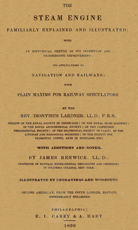 There are two classes of persons whose attention may be attracted by a treatise on such a subject as the Steam Engine. One consists of those who, by trade or profession, are interested in mechanical science, and who therefore seek information on the subject of which it treats, as a matter of necessity, and a wish to acquire it in a manner and to an extent which may be practically available in their avocations. The other and more numerous class is that part of the public in general, who, impelled by choice rather than necessity, think the interest of the subject itself, and the pleasure derivable from the instances of ingenuity which it unfolds, motives sufficiently strong to induce them to undertake the study of it. Without leaving the former class altogether out of view, it is for the use of the latter principally that the following lectures are designed.