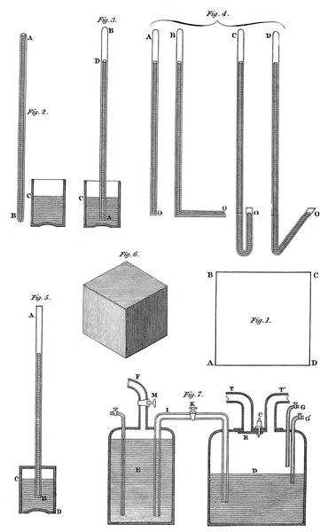 Motion the Agent in Manufactures. — Animal Power. — Power depending on Physical Phenomena. — Purpose of a Machine. — Prime Mover. — Mechanical qualities of the Atmosphere. — Its Weight. — The Barometer. — Fluid Pressure. — Pressure of Rarefied Air. — Elasticity of Air. — Bellows. — Effects of Heat. — Thermometer. — Method of making one. — Freezing and Boiling Points. — Degrees. — Dilatation of Bodies. — Liquefaction and Solidification. — Vaporisation and Condensation. — Latent heat of Steam. — Expansion of Water in Evaporating. — Effects of Repulsion and Cohesion. — Effect of Pressure upon Boiling-Point. — Formation of a Vacuum by Condensation.