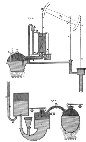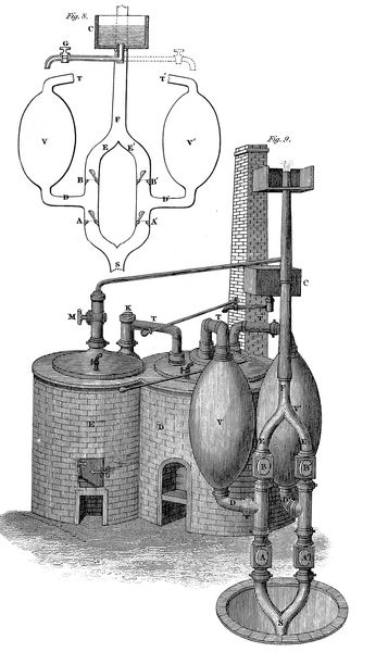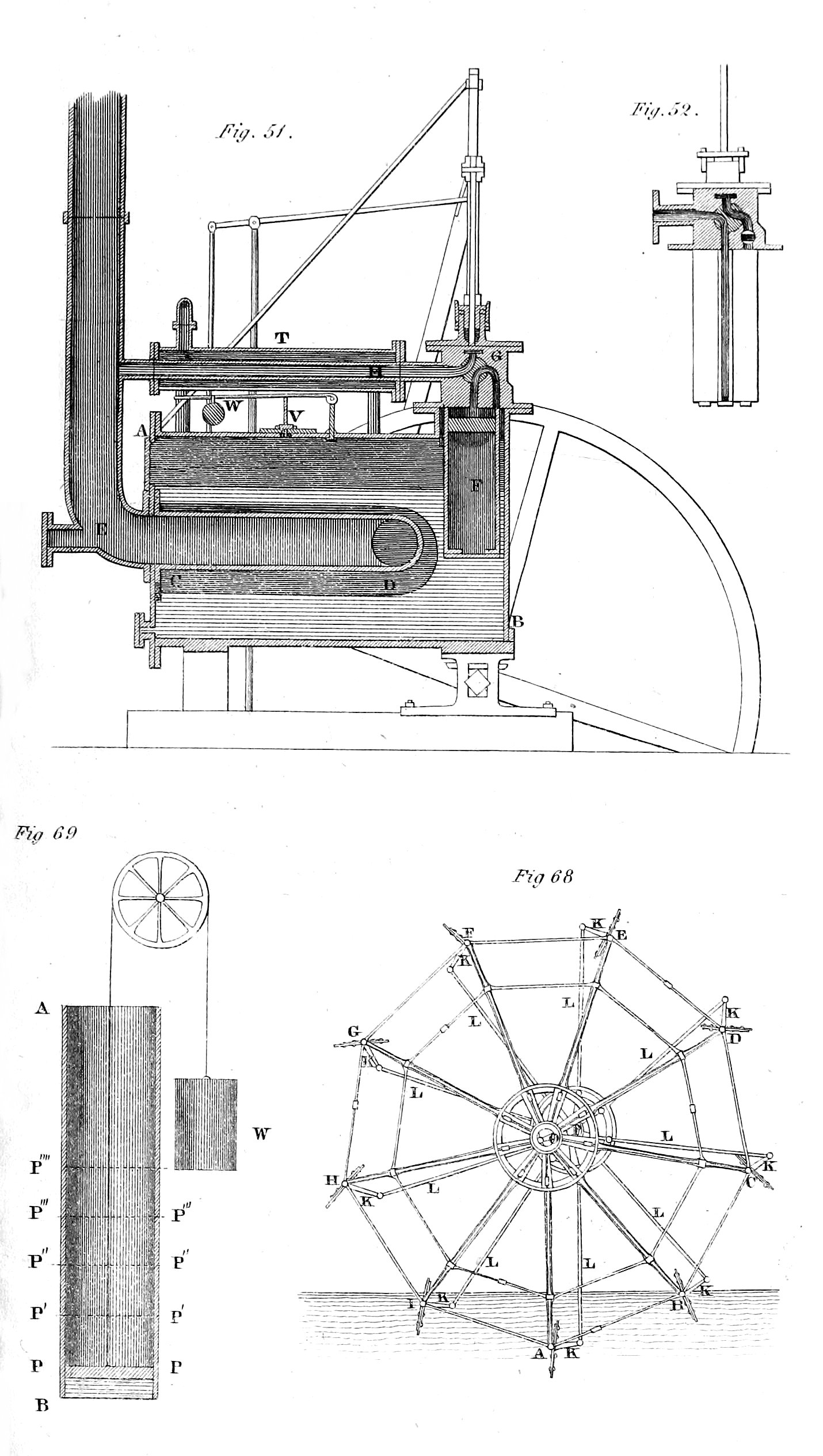 Savery's Engine. — Boilers and their Appendages. — Working Apparatus. — Mode of Operation. — Defects of the Engine. — Newcomen and Cawley. — Atmospheric Engine. — Accidental discovery of Condensation by Jet. — Potter's discovery of the Method of working the Valves. 51