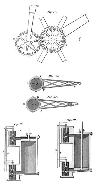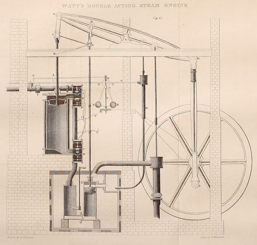 The Single-acting Engine unfit to impel Machinery. — Various Contrivances to adapt it to this Purpose. — Double-Cylinder. — Double-acting Cylinder. — Various modes of connecting the Piston with the Beam. — Rack and Sector. — Double Chain. — Parallel Motion. — Crank. — Sun and Planet Motion. — Fly Wheel. — Governor. 91