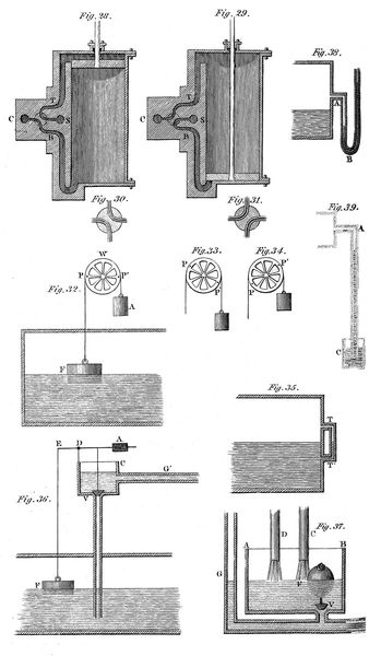 Motion the Agent in Manufactures. — Animal Power. — Power depending on physical Phenomena. — Purpose of a Machine. — Prime Mover. — Mechanical qualities of the Atmosphere. — Its Weight. — The Barometer. — Fluid Pressure. — Pressure of rarefied Air. — Elasticity of Air. — Bellows. — Effects of Heat. — Thermometer. — Method of making one. — Freezing and Boiling Points. — Degrees. — Dilatation of bodies. — Liquefaction and Solidification. — Vaporisation and Condensation. — Latent Heat of Steam. — Expansion of Water in Evaporating. — Effects of Repulsion and Cohesion. — Effect of Pressure upon Boiling Point. — Formation of a Vacuum by Condensation. Page 17