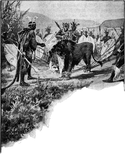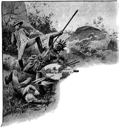 Pieter Maritz konnte dieser Scene nicht ohne das Gefühl des Mitleids für die Fremden zusehen. Er beobachtete die stolze Haltung, welche die schönen, schlanken und geschmeidigen Gestalten auszeichnete, und empfand in seinem Herzen die Neigung, ihnen beizustehen. Doch wagte er nicht, dem ehrwürdigen Ältesten der Gemeinde gegenüber den Mund aufzuthun, und er sah nur traurig[S. 17] zu, wie diese Leute, welche sich nicht verständlich machen konnten, von den Fäusten ihrer gemeineren Landsleute gepackt wurden. Aber nun schien der ältere von den beiden Verurteilten, indem er begriff, daß es sich um Leben und Tod handelte, einen neuen Entschluß gefaßt zu haben. Er stieß die Männer, die ihn hielten, mit einer kraftvollen Bewegung seiner nervigen Arme zurück und richtete dann an den Graubart in englischer Sprache einige Worte, aus denen zu verstehen war, daß er und sein Gefährte unter dem Schutze des Missionars ständen und Gesandte des Zulukönigs seien. Er redete das Englische sehr unvollkommen und mit einer schnalzenden Aussprache, doch war der Sinn seiner Worte klar, und das Wort Zulu traf alle, die es hörten, wie ein Schlag.