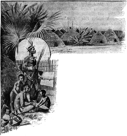Pieter Maritz hatte sich einen Haufen von Büschen neben dem Lager zurecht gelegt, das er für Jager aus Stroh und Blättern bereitet hatte, und streckte sich neben dem Pferde aus. Er sah noch eine kurze Weile die Sterne über seinem Kopfe schimmern, dann aber schlief er ein und wachte nicht eher auf, als bis der Himmel wieder hell geworden war. Er hörte ein Gewirr von Stimmen und drohende Worte, und als er sich aufrichtete, sah er, daß in einiger Entfernung schwarze Diener des Buernlagers zwei andere Schwarze gleichsam als Gefangene mit sich führten. Er konnte diese beiden Gefangenen leicht schon an ihrem Äußern als Fremde erkennen. Denn die Diener der Buern gingen zwar mit nackten Beinen, aber trugen blaue, rote oder schmutzig weiße Wollenhemden, die beiden Männer in ihrer Mitte aber waren völlig nackt, bis auf einen schmalen Lendengurt. Pieter Maritz sprang von seinem Lager auf und näherte sich neugierig der Gruppe. Er sah nun noch deutlicher, daß die beiden Gefangenen von einem fremden Stamme sein mußten. Sie waren dunkelfarbig, von hohem, schlankem[S. 16] Wuchs und stolzem Aussehen. Ihr Haar war sehr künstlich in krause Löckchen zusammengedreht und mit steifem Fett fest gehalten, ihr Körper war weniger dick mit Öl und Butter eingerieben, als er es sonst bei den Kaffern gesehen hatte, und ihr Benehmen war von einer gewissen Würde, so daß der Knabe dachte, es müßten vornehme Leute unter ihrem Volke sein. Er begleitete den lärmenden Haufen bis zum Mittelpunkte des Lagers, welches jetzt mit dem Anbruch des Tages zu erwachen anfing, und sah, daß sich mehrere ältere Buern versammelt hatten und, auf ihre Büchsen gestützt, das Herankommen der Schwarzen erwarteten.