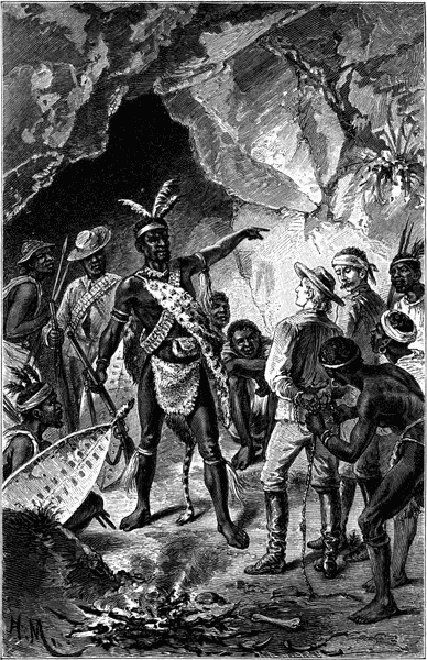 »Wir sind hier sicher vor Verfolgung,« hub der Verwundete nach einer Weile an. »Kein Kaffer wird sich hierher wagen, denn sie fürchten sich vor den Toten. Ein furchtbarer Kampf war hier vor mehr als zwanzig Jahren. Ich war mit dabei. Hier in dieser Höhle hatten sich Tausende von Schwarzen eingeschlossen, um sich gegen uns zu verteidigen, aber wir häuften Strauchwerk vor den Eingängen auf und zündeten es an, so daß sie alle im Rauche erstickten.«
