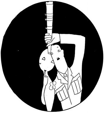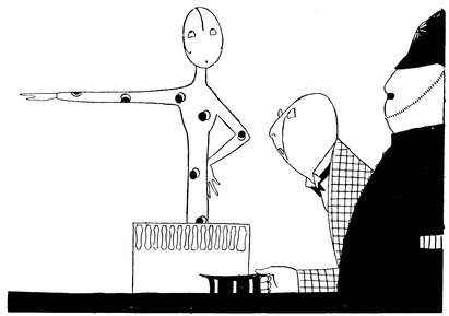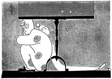 —she ups and biffs him one in the eye, with surprisingly successful results. What is left of Adam may be seen in the picture on the right. He is now longing for conscription