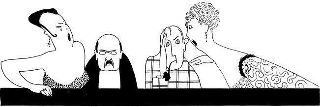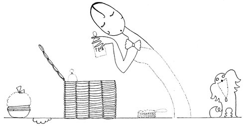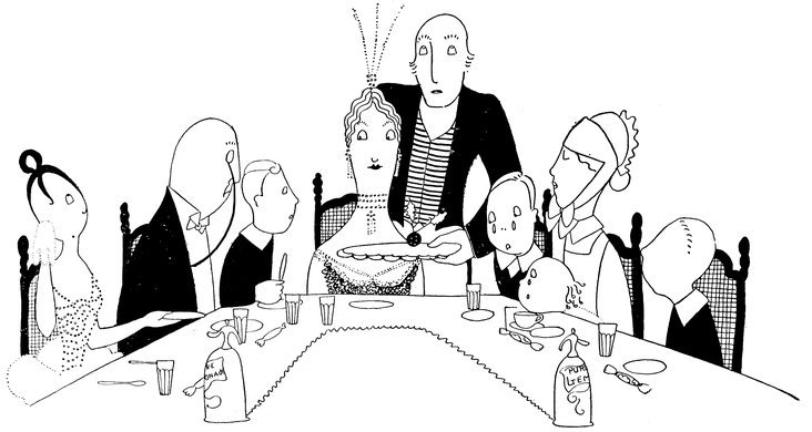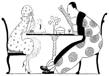 Imagine Eve’s astonishment to see, when she arrives at the restaurant, Adam wallowing in a scrumptious dinner with some of his men friends. Eve sees but manages not to be seen, and at an early hour she slips away and rushes home, where she awaits the elusive Adam—