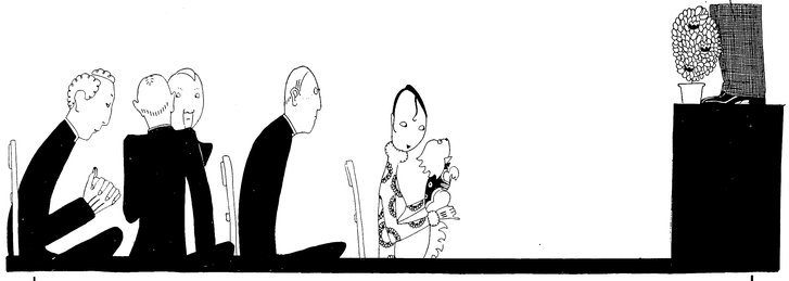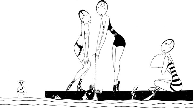 Even Eve’s desperate attempts to simulate a gaiety which she does not feel do not blind one entirely to the tragedy of the Adamless condition of our bathing beaches