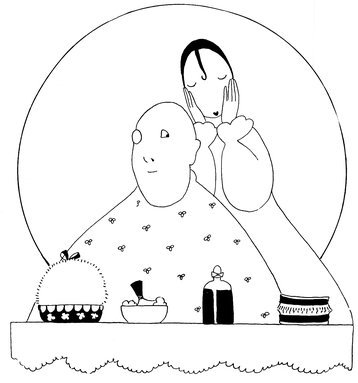 —whom she greets with tender solicitude, and insists on his sitting right down and devouring all that nice macaroni that cook has kept hot for him. Serve him right, the brute!