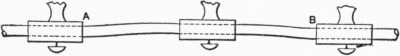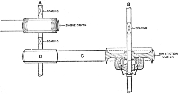 Both pulleys were solid and the keys—headless ones—had been driven home to stay. The rims of both pulleys almost touched the wall, and the circumferential position on the shaft of both these pulleys was such as to preclude the possibility (owing to an arm of a being in a direct line with key B1 and arm of b with key a1) of using anything but a side offset key starting drift.