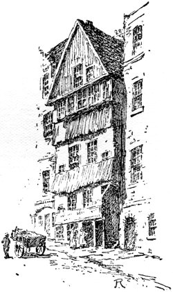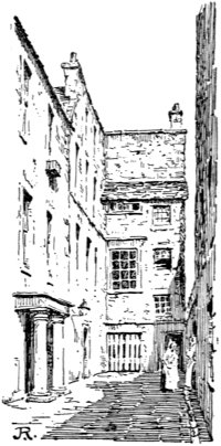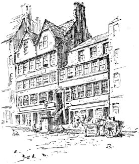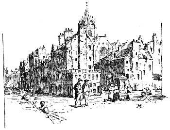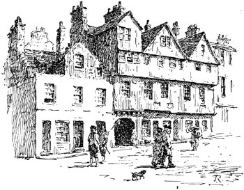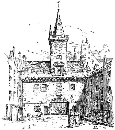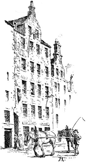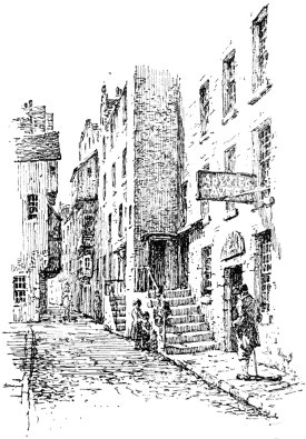 [244] On the north side of the High Street, opposite the Tron Church. The site is now covered by the opening of Cockburn Street.
