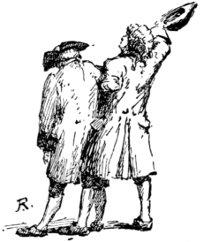 [237] ‘At a former period, when the Canongate of Edinburgh was a more fashionable residence than at present, a lady of rank who lived in one of the closes, before going out to an evening-party, and at a time when hairdressers and peruke-makers were much in demand, requested a servant (newly come home) to tell Tam Tough the hairdresser to come to her immediately. The servant departed in quest of Puff, but had scarcely reached the street before she forgot the barber’s name. Meeting with a caddy, she asked him if he knew where the hairdresser lived. “Whatna hairdresser is ’t?” replied the caddy. “I ha’e forgot his name,” answered she. “What kind o’ name wus ’t?” responded Donald. “As near as I can mind,” said the girl, “it was a name that wad neither rug nor rive.” “The deil ’s in ’t,” answered Donald, “but that’s a tam’d tough name.” “Thank ye, Donald, that’s the man’s name I wanted—Tam Tough.”’—[From an Edinburgh Newspaper.]