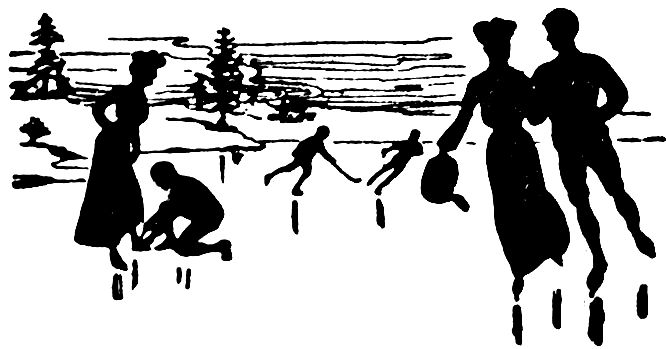 Encourage games and races and figure skating competition. Get up moonlight skating parties on the ice. String lanterns about and have a costume skating carnival. If the circumstances permit make a gigantic bonfire and provide hot coffee and other refreshments. In some parts of northern Europe large parties of young people skate great distances on the rivers, stopping at various towns for lunch and dinner and returning by train.