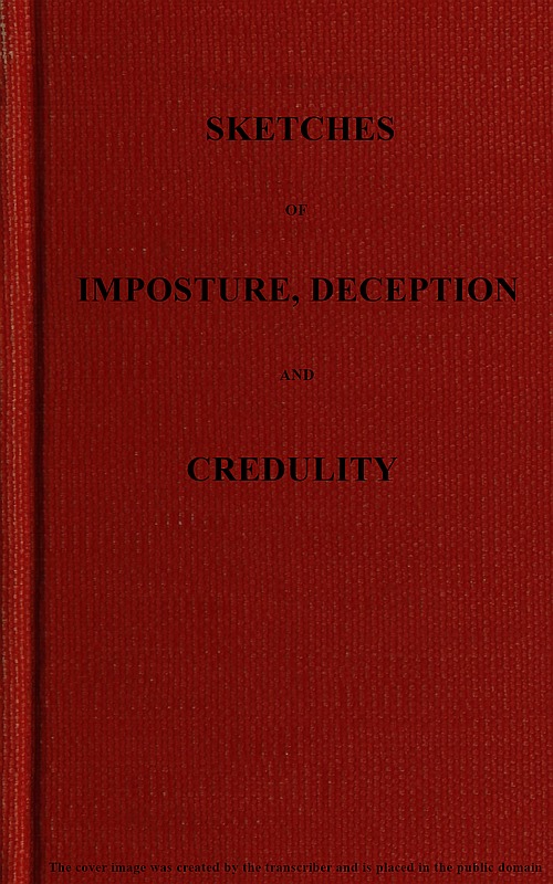 The Project Gutenberg EBook of Sketches of Imposture, Deception, and Credulity, by R. A. (Richard Alfred) Davenport This eBook is for the use of anyone anywhere in the United States and most other parts of the world at no cost and with almost no restrictions whatsoever. You may copy it, give it away or re-use it under the terms of the Project Gutenberg License included with this eBook or online at www.gutenberg.org. If you are not located in the United States, you'll have to check the laws of the country where you are located before using this ebook. Title: Sketches of Imposture, Deception, and Credulity Author: R. A. (Richard Alfred) Davenport Release Date: May 2, 2020 [EBook #61993] Language: English Character set encoding: UTF-8 *** START OF THIS PROJECT GUTENBERG EBOOK SKETCHES OF IMPOSTURE, DECEPTION, CREDULITY *** Produced by MFR, Robert Tonsing, and the Online Distributed Proofreading Team at https://www.pgdp.net (This file was produced from images generously made available by The Internet Archive)