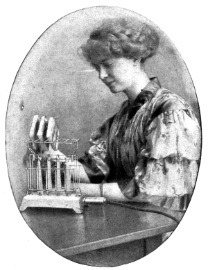 In the Miner residence are five electrical heaters, which Mr. Miner states will raise the temperature to 75 degrees when it is zero [Pg 22] outside. Since these heaters were installed there has not been much use for the wood saw. There are also in the house some electric fans which stir up a breeze on the hot days. An electric ventilator fan in the attic insures good ventilation at all times. In the kitchen the Miners cook for a family of from five to ten with an electric range, and iron with an electric iron attached by a cord to an ordinary electric lamp socket. A smaller motor operates the egg beater and cream whipper; another small motor drives the sewing machine.