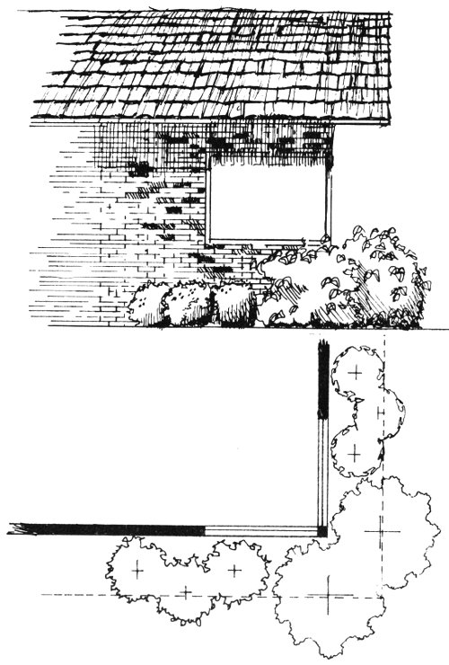 Shrubs will soften the lines at the corners of your house. Where windows are close to the corner, select dwarf shrubs that will not grow higher than the sill.