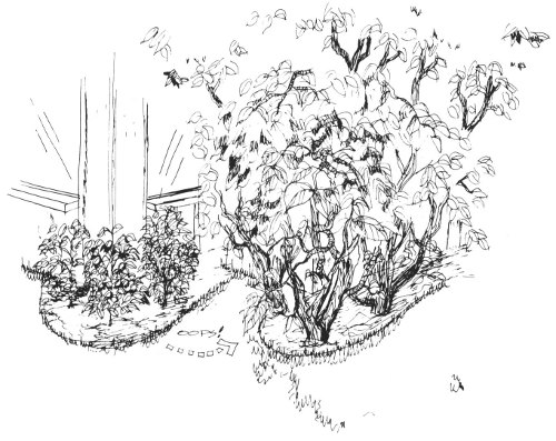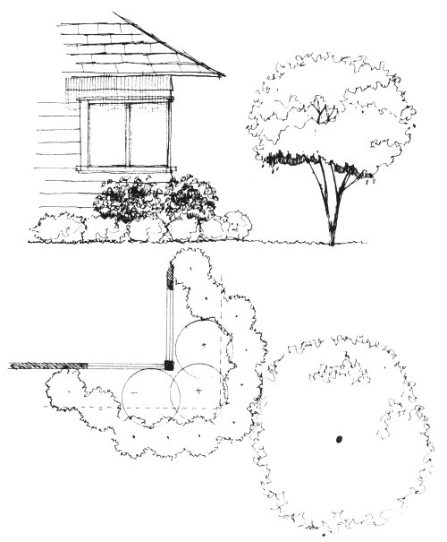 Shrubs that will soften the lines of the house or buildings have a round, oval, or irregular shape. These shrubs break the strong vertical lines at the corners of the house, rather than call attention to them.