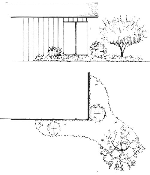 Shrubs will soften the lines at the corners of your house. Where windows are close to the corner, select dwarf shrubs that will not grow higher than the sill.